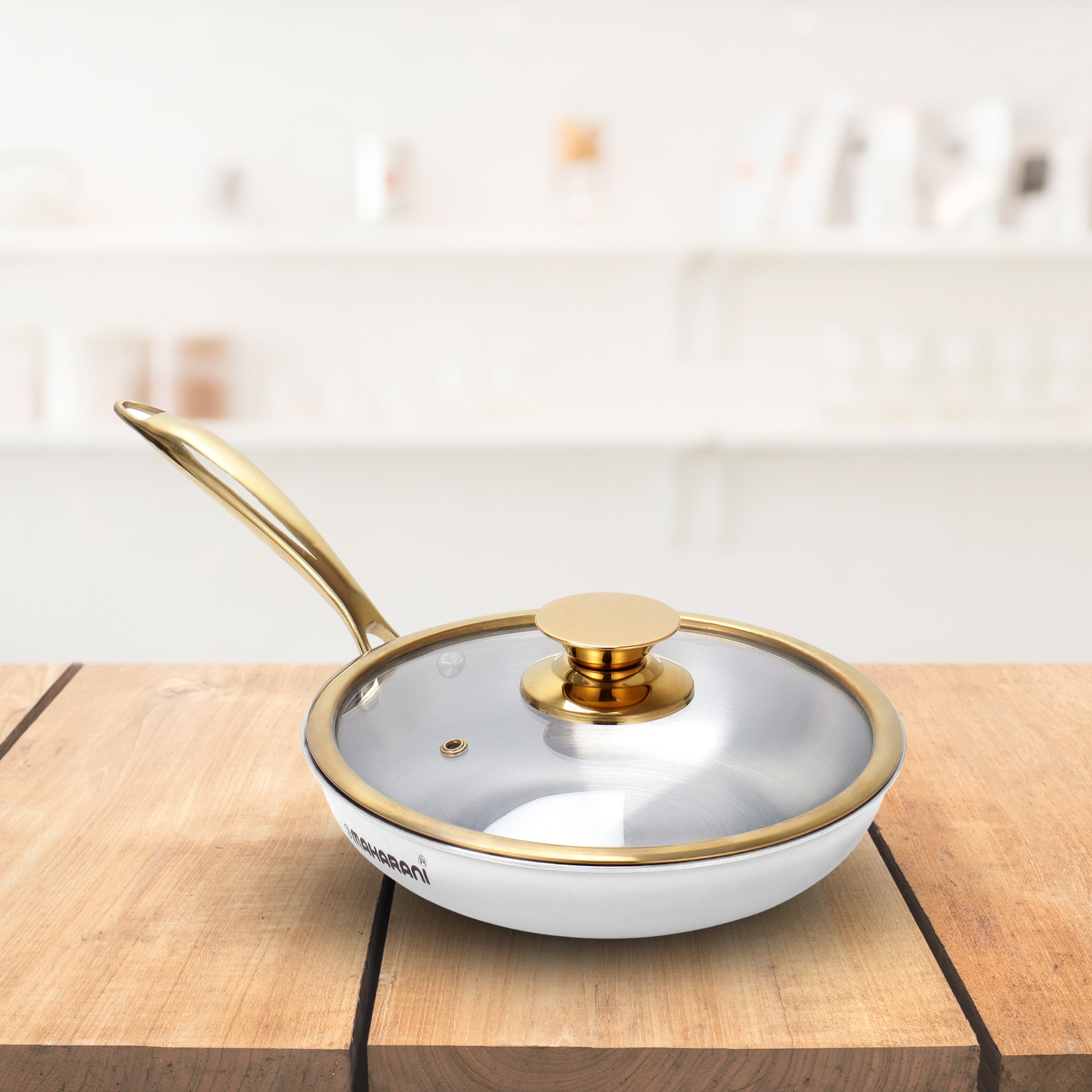 Enhance your cooking with the Triply Stainless Steel Gold Frying Pan, designed to deliver exceptional performance, durability, and elegance. Available in three sizes—22cm, 24cm, and 26cm—this frying pan is a must-have for every kitchen, compatible with all heat sources, including induction.